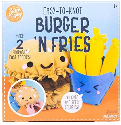 Create and design a plush pillow inspired by your favorite lunch with the Sew-Mazing Knot Your Own Burger N Fries set! Without sewing or needles, learn a new skill, by simply knotting each colorful fleece fabric together to create a trendy d.i.y. creation. Embellish your with pillow with self-adhesive fleece stickers that bring out personality and expression. No scissors or glue needed. When you are done, enjoy your trendy and cozy pillow at a fun sleep over, movie night and more.