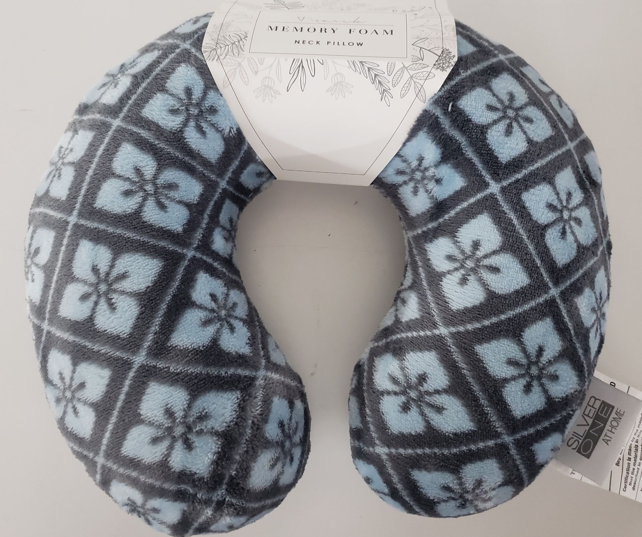 SILVER ONE Soft Memory Foam Travel Airplane Neck Pillow Comfortable Cushion Provides Relief – Baby Blue Flowers