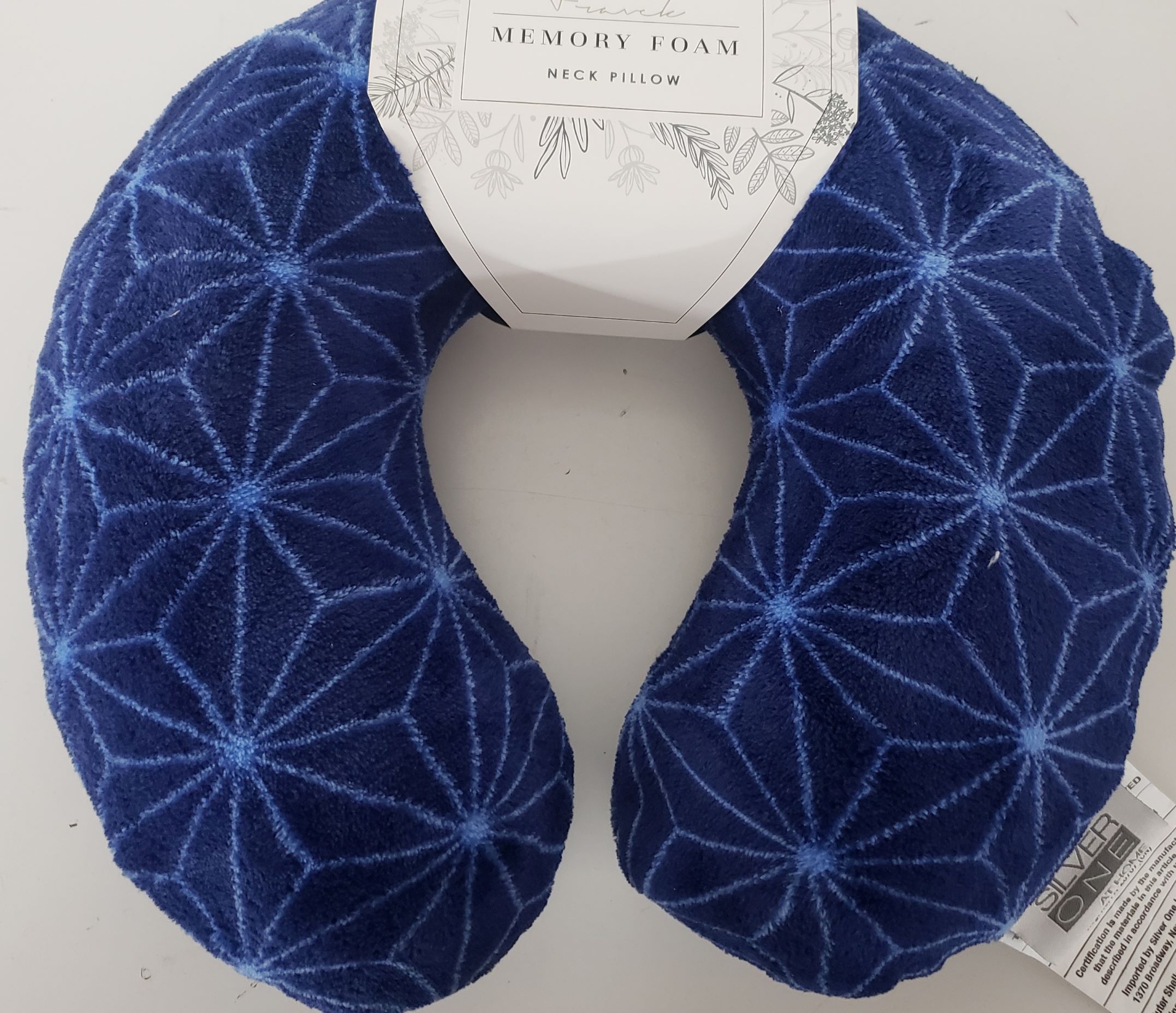 SILVER ONE Soft Memory Foam Travel Airplane Neck Pillow Comfortable Cushion Provides Relief – Blue Snowflakes