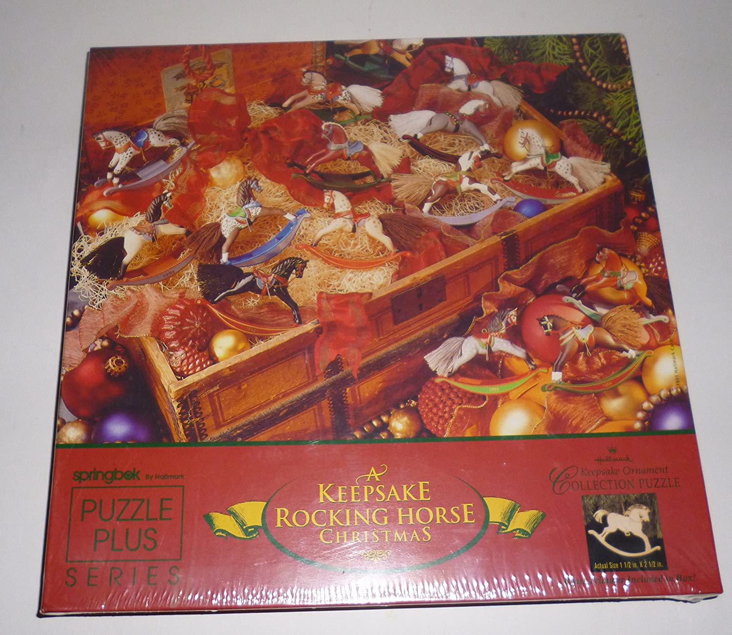 Springbok A Keepsake Rocking Horse Christmas 500 Piece Jigsaw Puzzle. Special puzzle plus series with brass trimmer ornament included in box! 1995 Hallmark, no longer sold in stores.