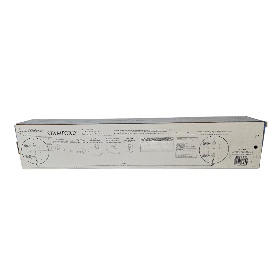 • 18″L Towel Bar UPC: 071862654304 P/N: 65430; 4″H Robe Hook UPC: 071862654359 P/N: 65435