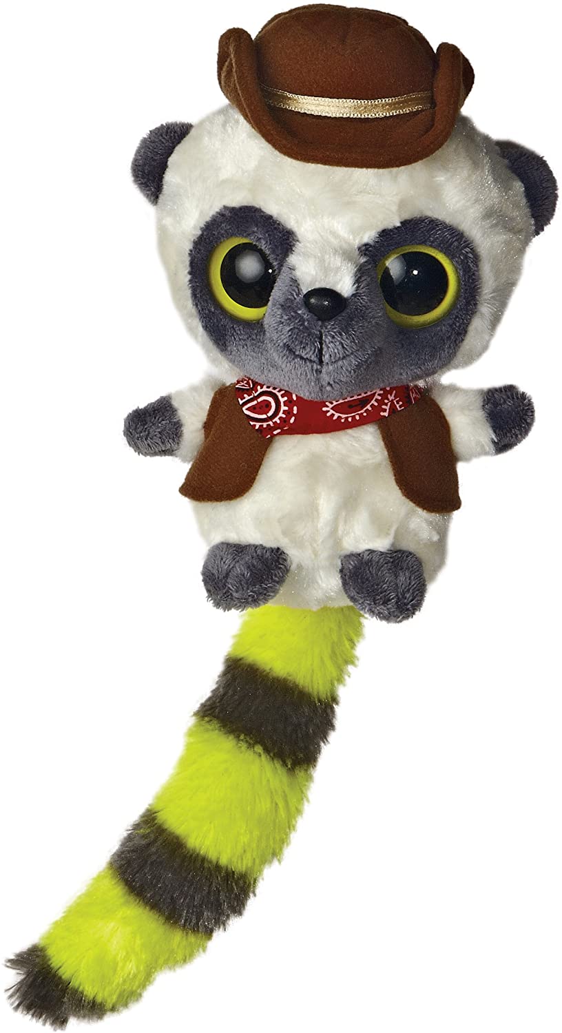 This adorable Plush toys is dressed up as cowboy, with hat, vest, and red bandana. It plays fun inches boing inches sound when you squeeze its stomach. Collectible. Cute. Bean-filled. Yellow-striped tail. Great gift item.