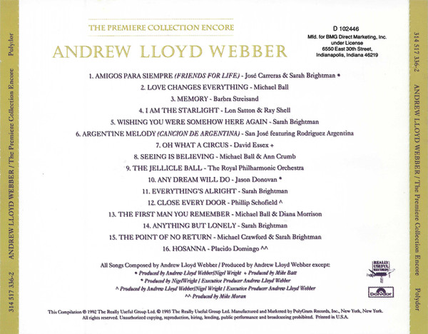 The Premiere Collection Encore: Andrew Lloyd Webber (Music CD)