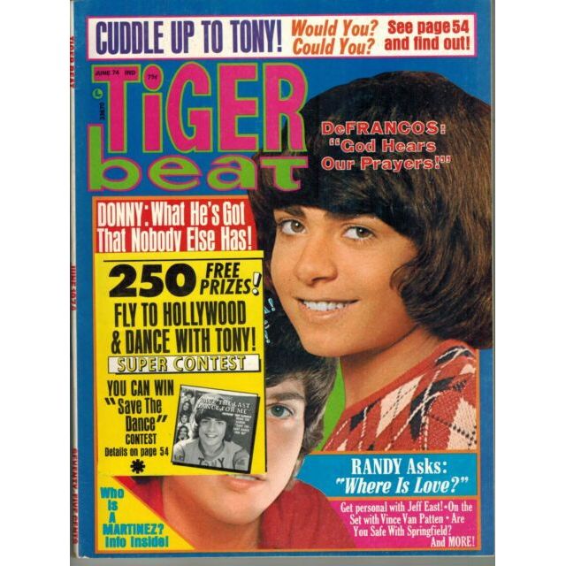 Tiger Beat Donny, Randy, Tony – June 1974 (Collectible Single Back Issue Magazine)