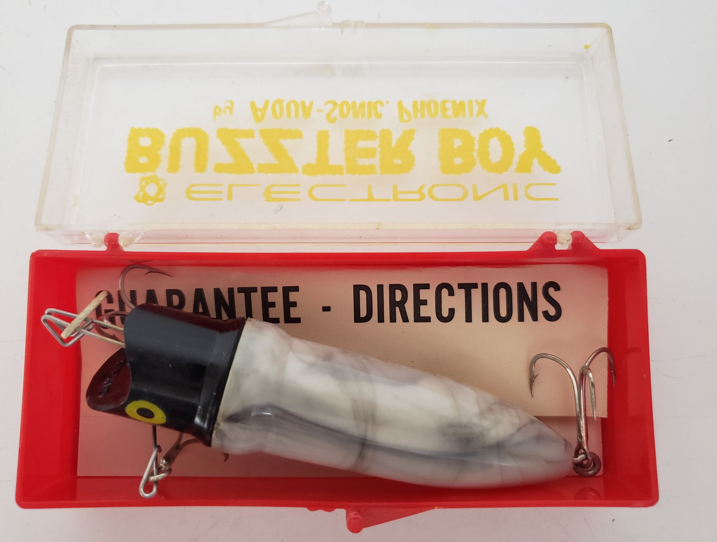 Vintage 1960 Buzzter Boy Electronic Fishing Lure by Aqua-Sonic, Marble