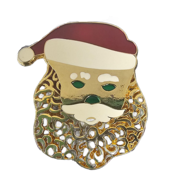 Vintage 1970’s Gold Tone Enamel Santa Claus Face Christmas Pin Brooch 2″