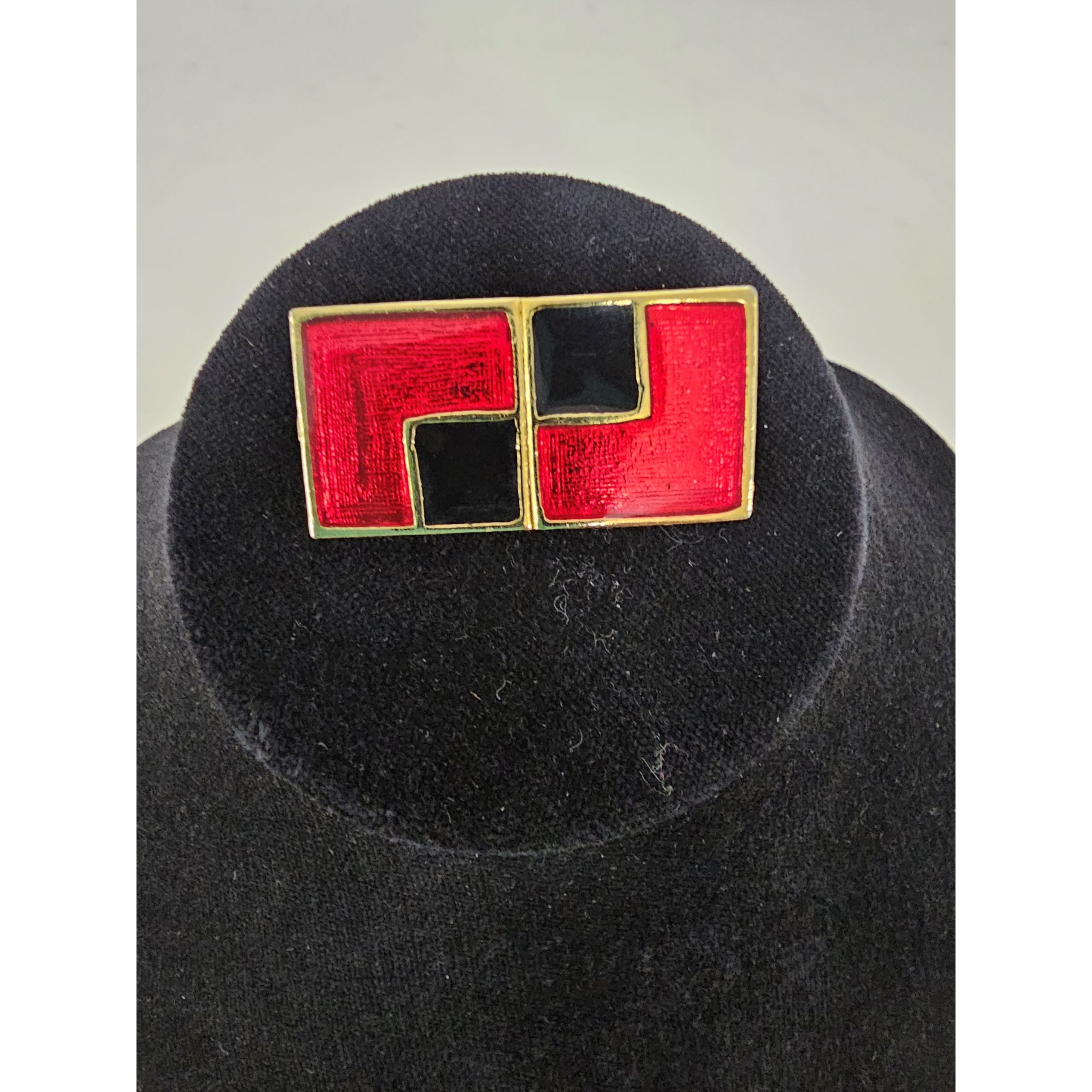 Vintage 1980’s Red and Black Enamel Geometric Goldtone Pin Brooch