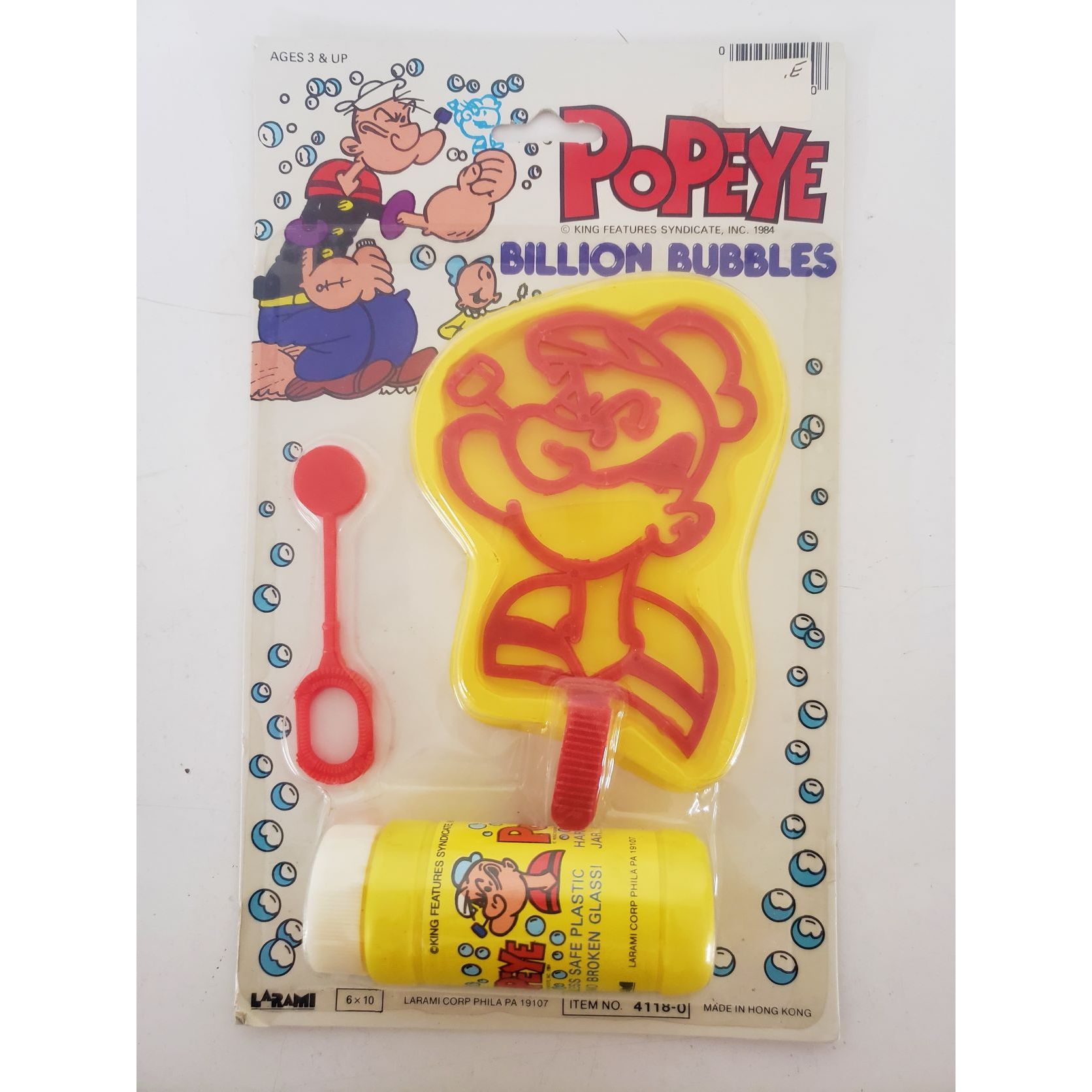 Collectible Popeye Billion Bubbles Toy. Includes plastic bottle of bubble and Popeye bubble wand with tray.
