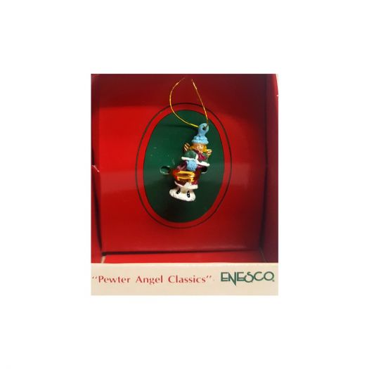 Vintage 1989 Enesco Small Wonders Pewter Angel Classics Miniature Ornament – Blue Hat & Muff