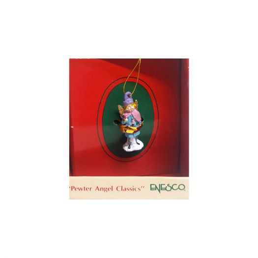 Vintage 1989 Enesco Small Wonders Pewter Angel Classics Miniature Ornament – Purple Hat, Pink Shaw, Blue Dress