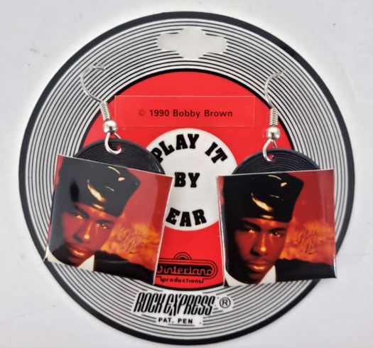 Vintage 1990 Bobby Brown Rock Express / Play It By Ear Album Cover Earrings (NOS)