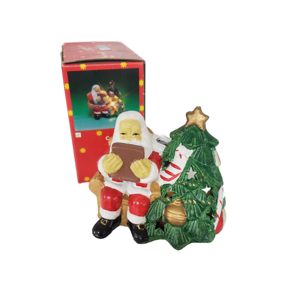 Vintage 1991 Artmark Santa Tealight Candle Holder 5″ – Lights Christmas Tree