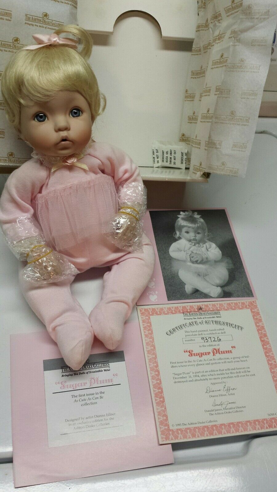 Vintage 1994 The Ashton-Drake Galleries As Cute As Cute Can Be “Sugar Plum” Girl Porcelain Doll 10″