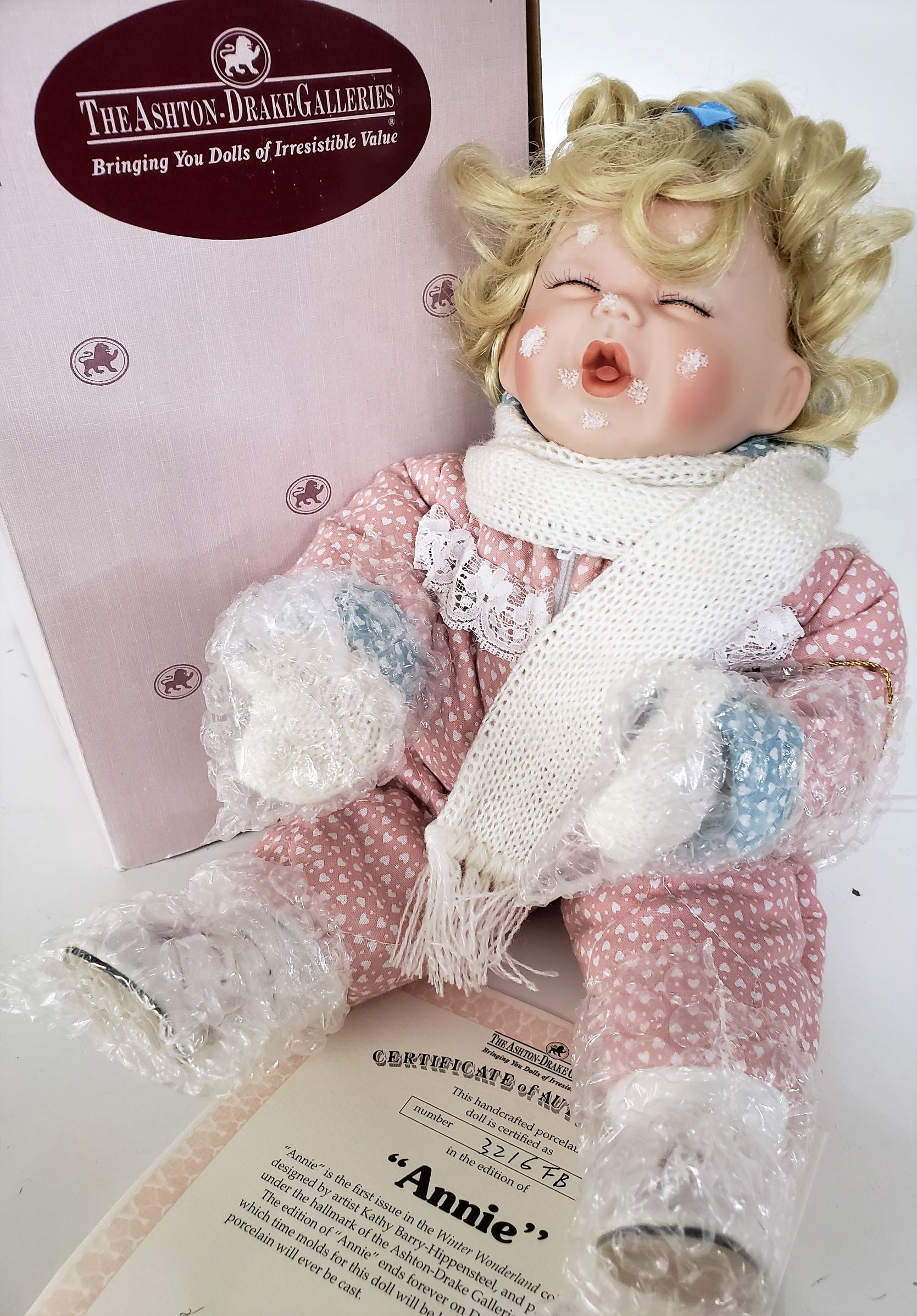 - “Annie” is the first issue in the Winter Wonderland collection designed by artist Kathy Barry-Hippensteel, and produced under the hallmark of the Ashton-Drake Galleries