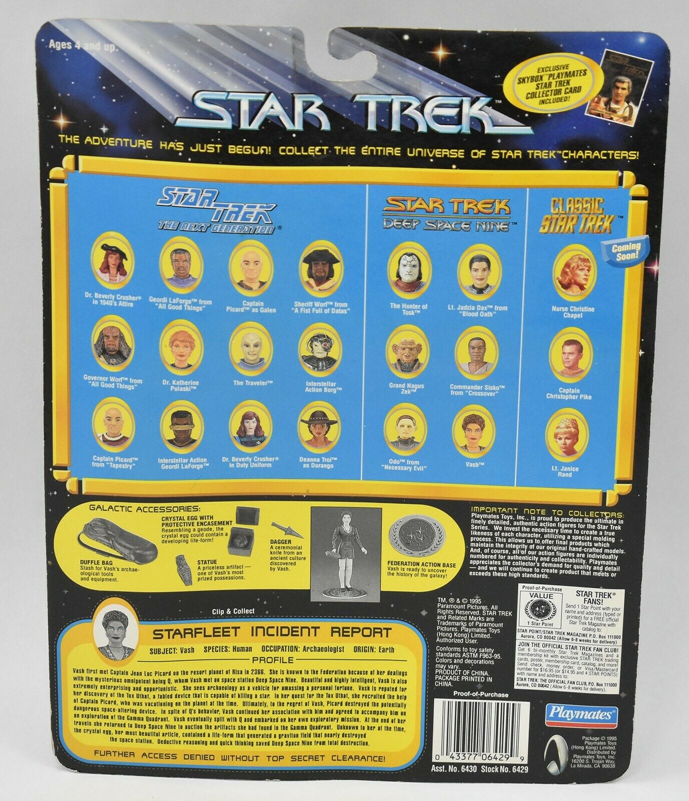 - Package contains (1) action figure with Galactic accessories including: Duffle Bag, Statue, Crystal Egg w/ Case, Dagger and Federation Action Base