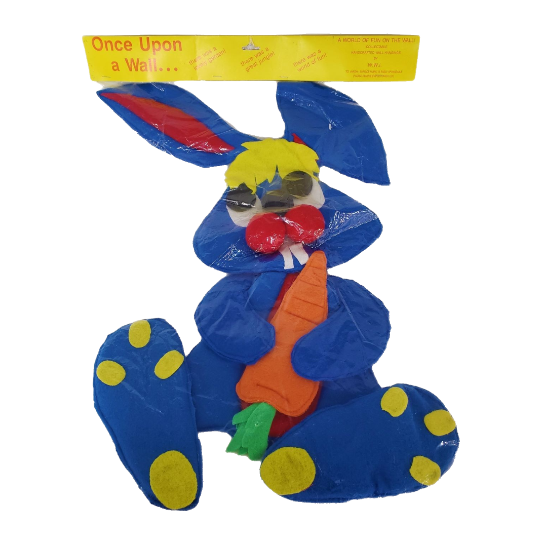 - Features blue bunny rabbit holding a carrot and measures 25″ x 16″