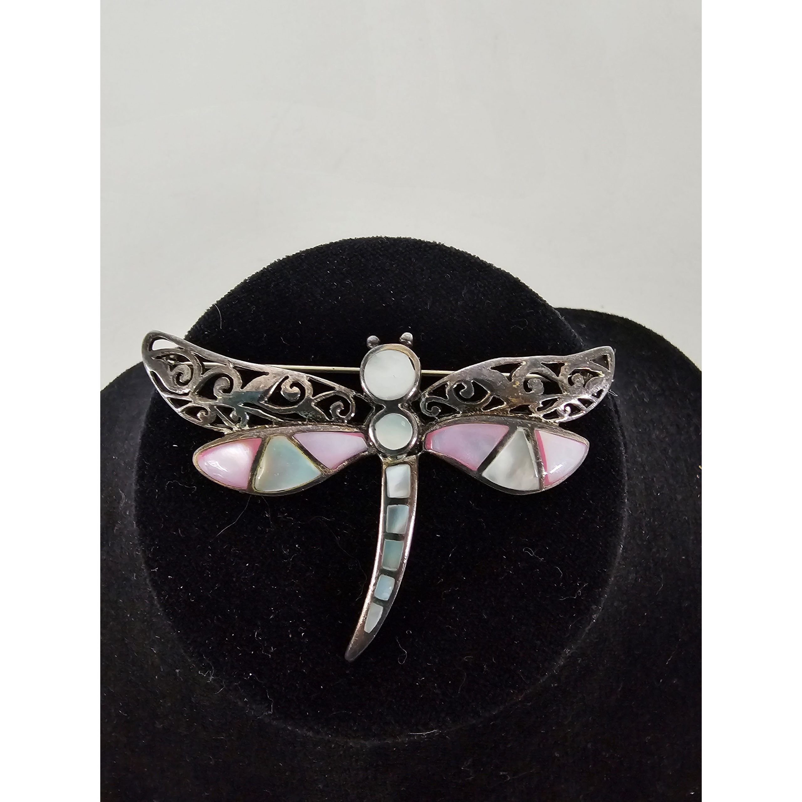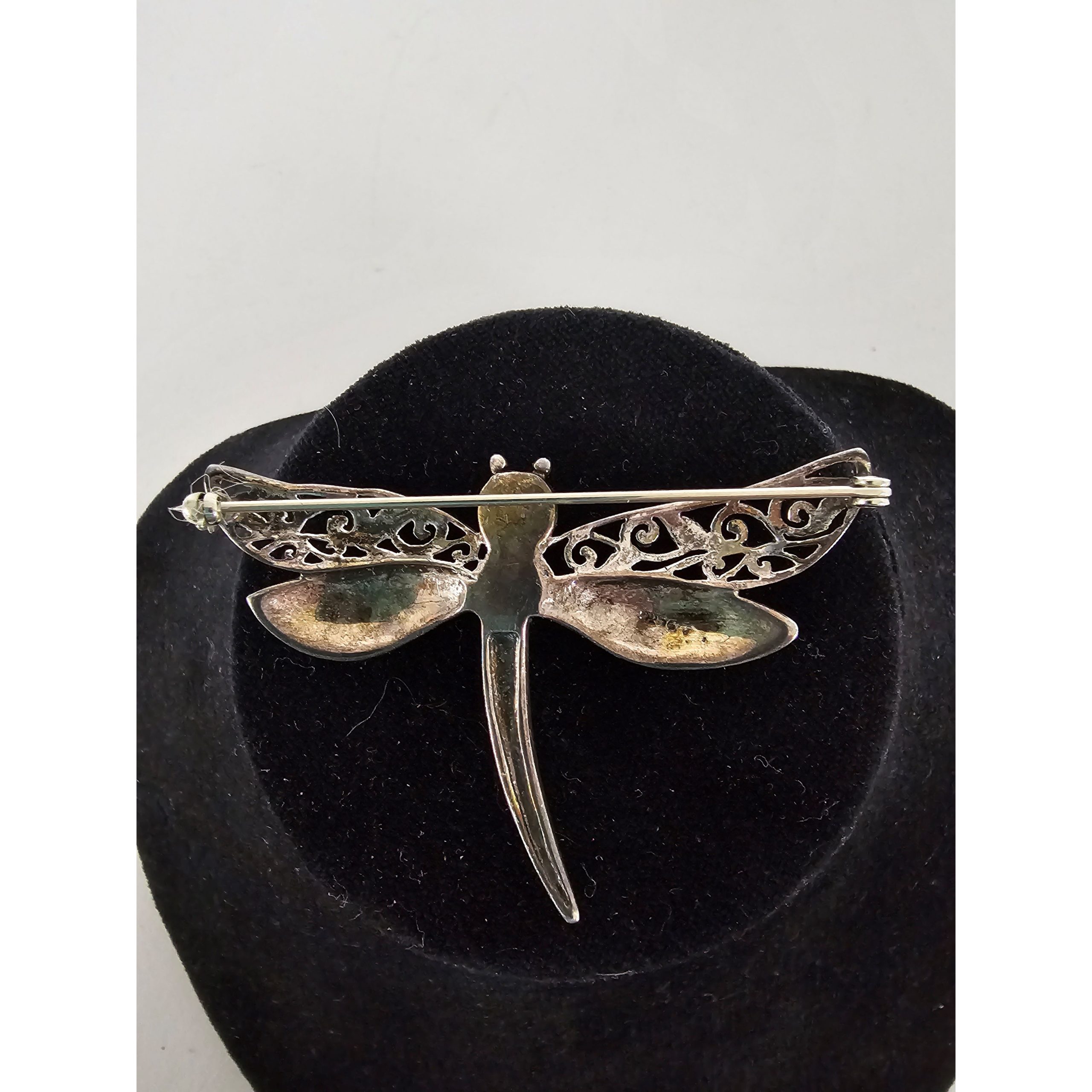 Vintage Brooch Dragonfly 925 Silver Filagree Abalone Mother of Pearl