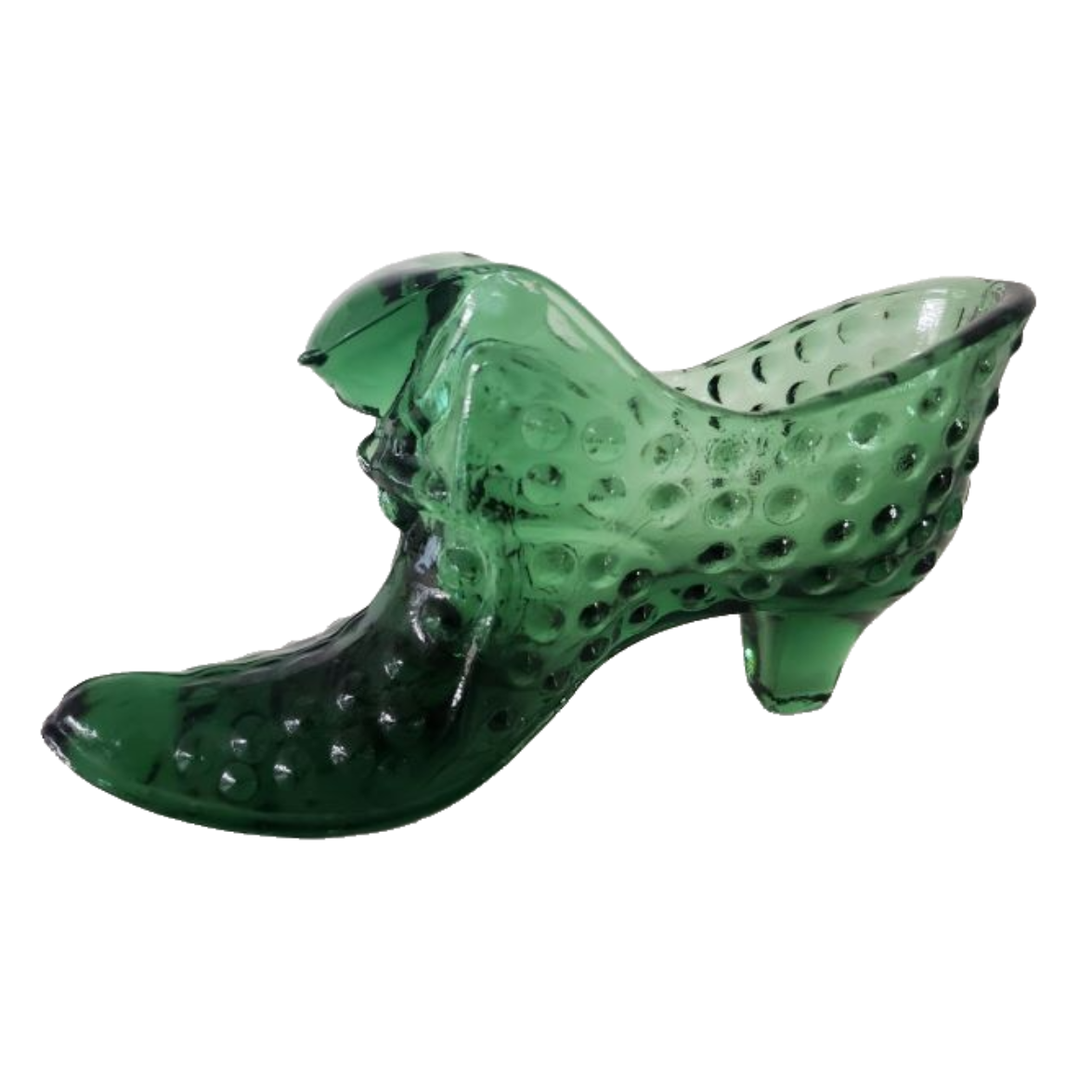 Vintage Collectible Fenton Hobnail Green Cat Head Buckle Art Glass Slipper