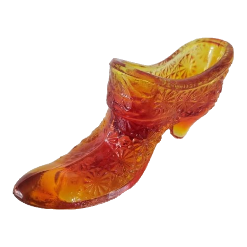 Vintage Collectible L E Smith Daisy & Button Amber Red Art Glass Slipper