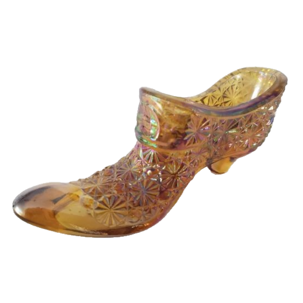 Vintage Collectible L E Smith Daisy & Button Iridescent Brown Art Glass Slipper