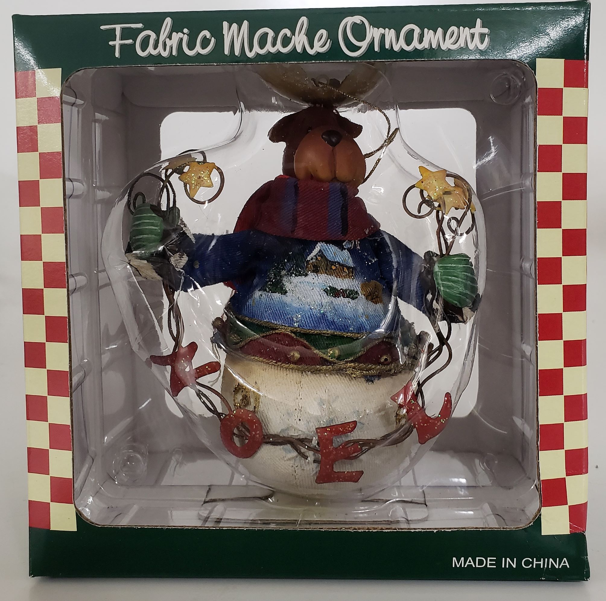 Fun and festive with a vintage style design fabric mache ornament. Imported. Measures: 4 x 3 x 5.5