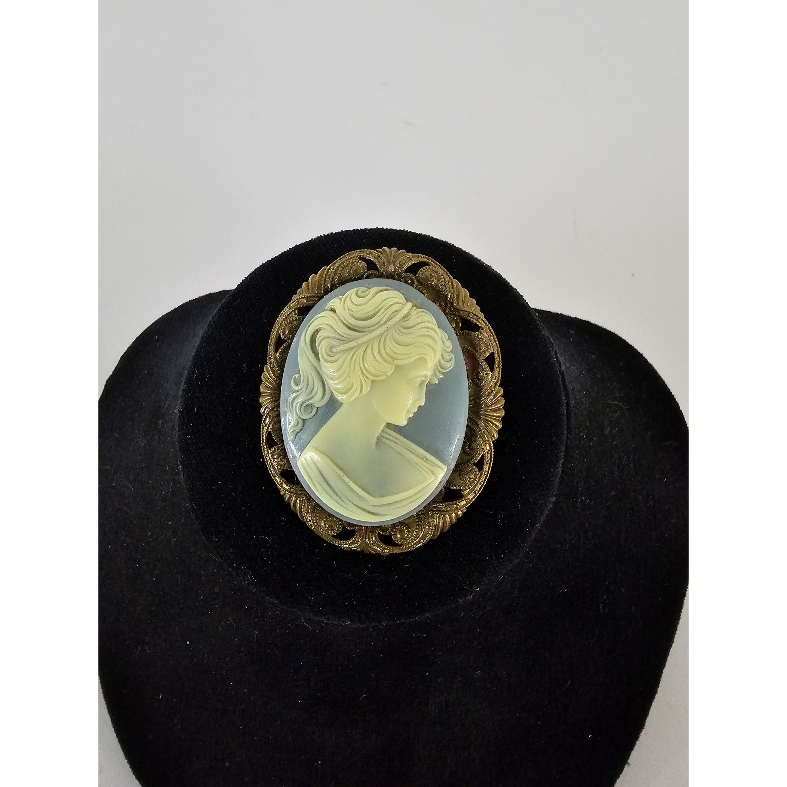 Vintage Dusty Blue Cameo Lady Western Germany Brooch Pin