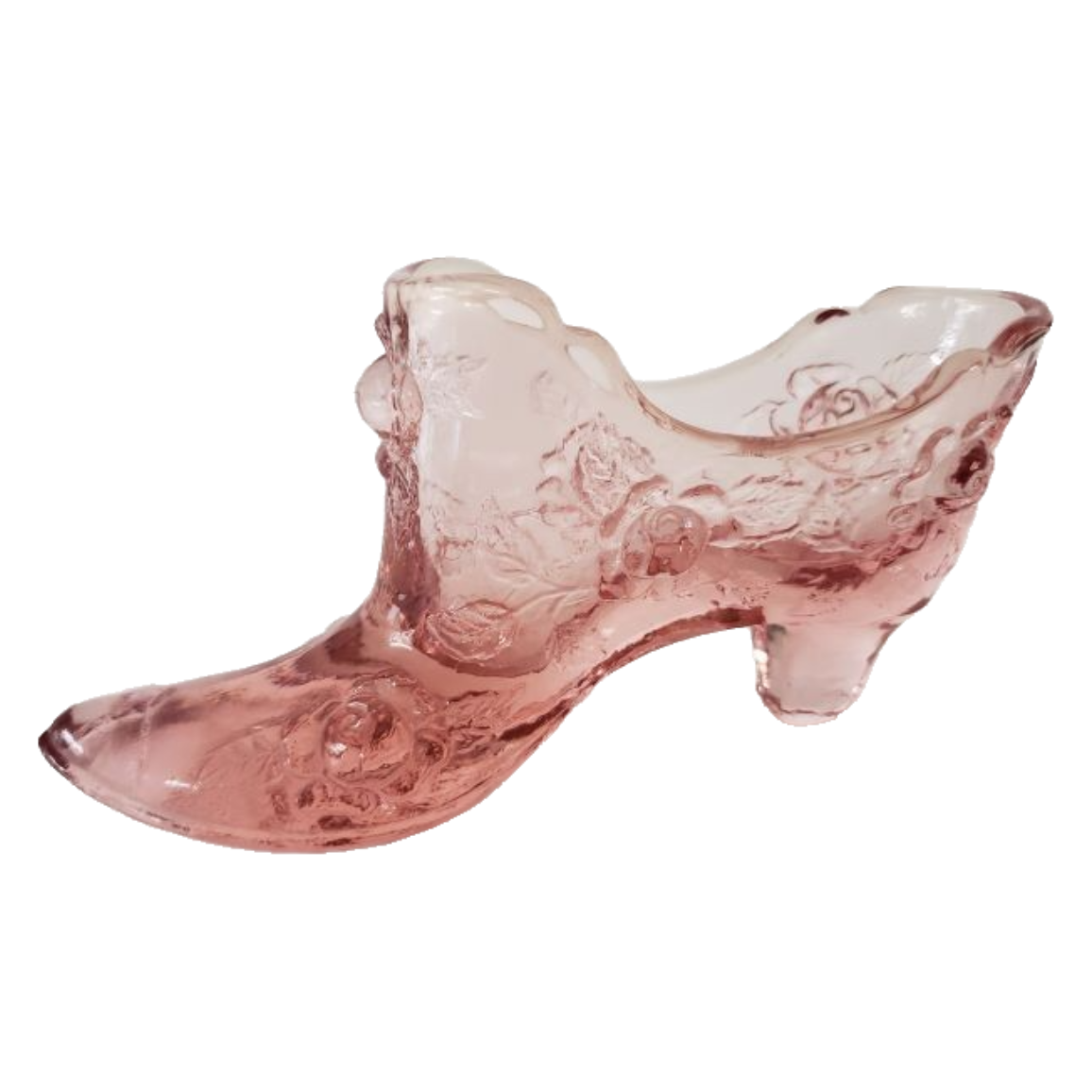Vintage Fenton Cranberry Pink Art Glass Cabbage Rose Shoe Boot Slipper