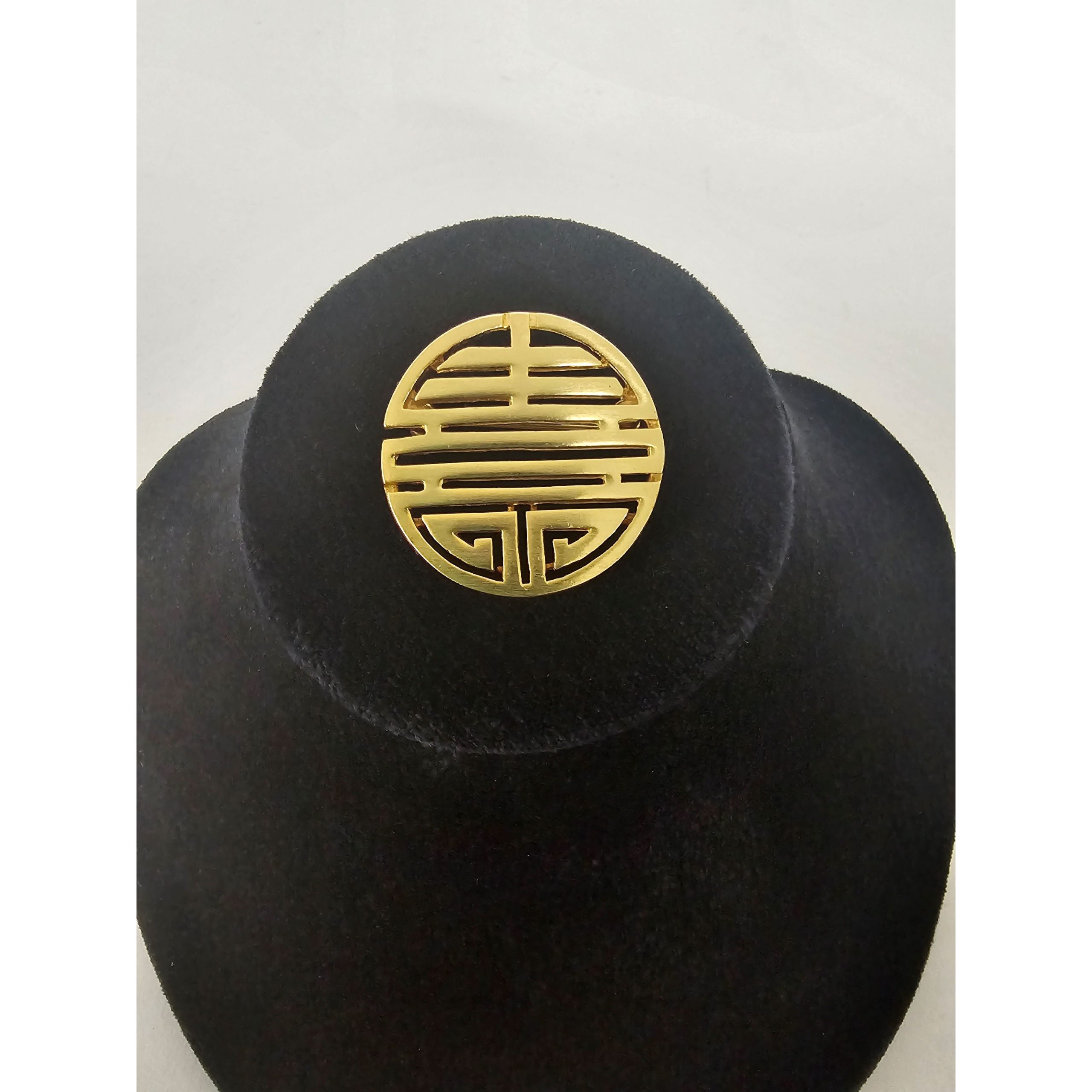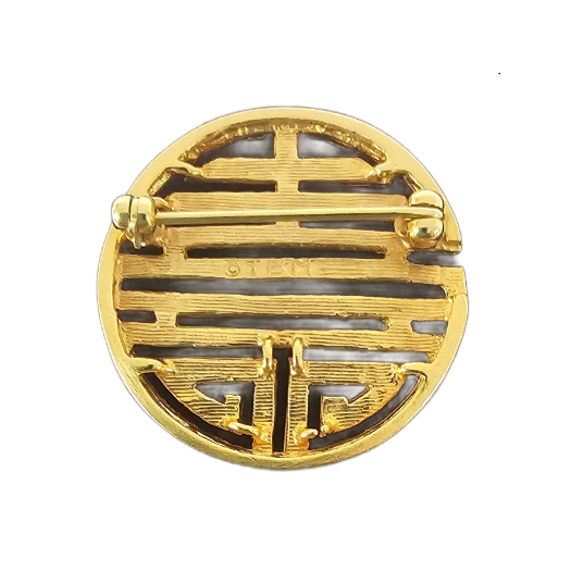 Vintage Gold Tone Chinese Longevity Symbol Pin Brooch Marked TBM The Brooklyn Museum