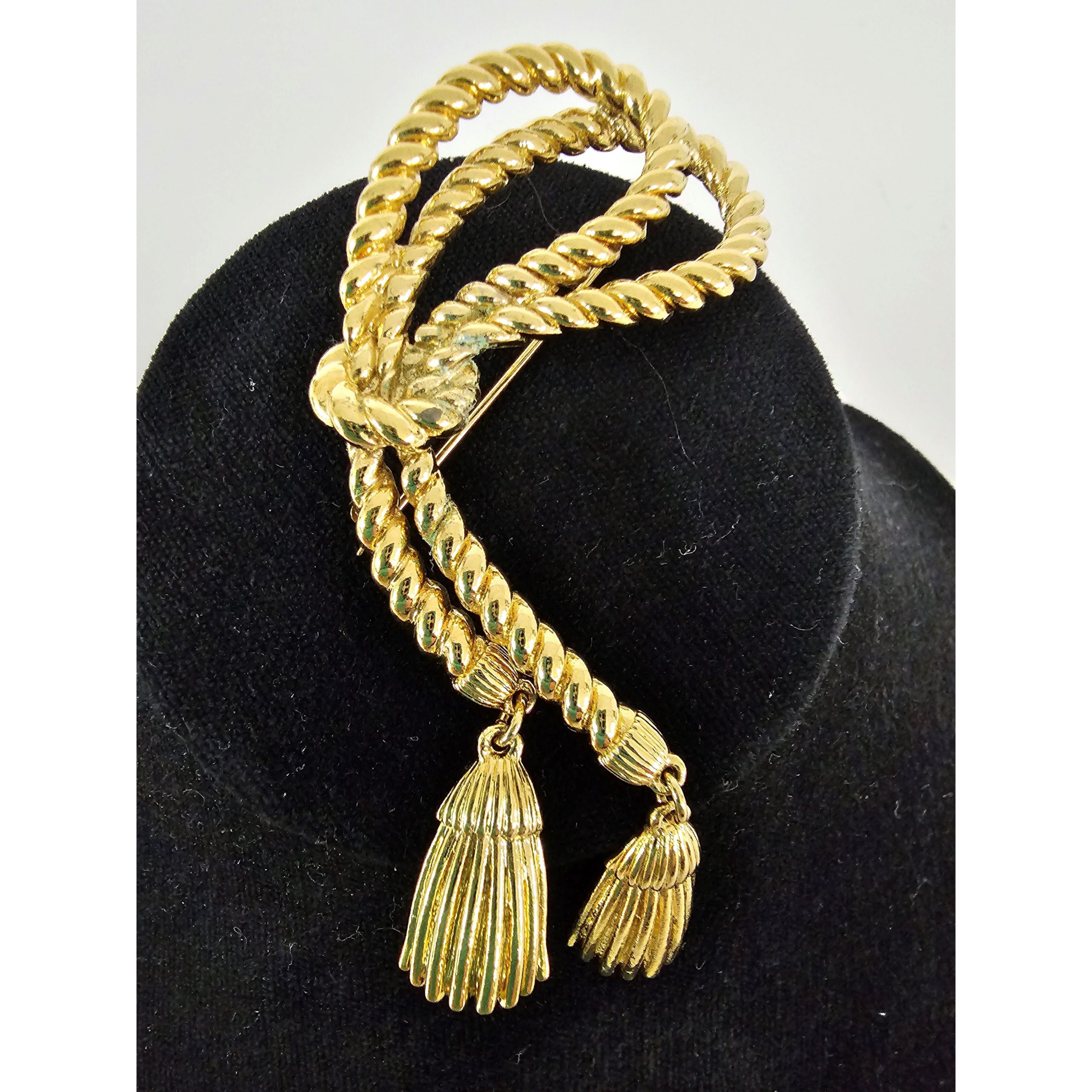 Vintage Gold Tone Rope & Tassel Brooch Pin
