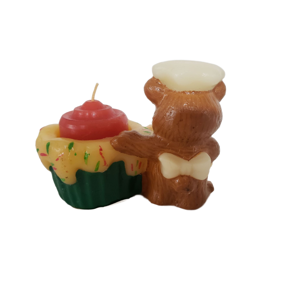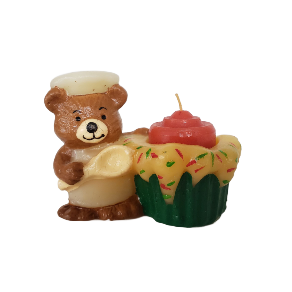 Vintage JASCO CHRISTMAS FRIEND Holiday Chef Bear and Cupcake Candle & Holder