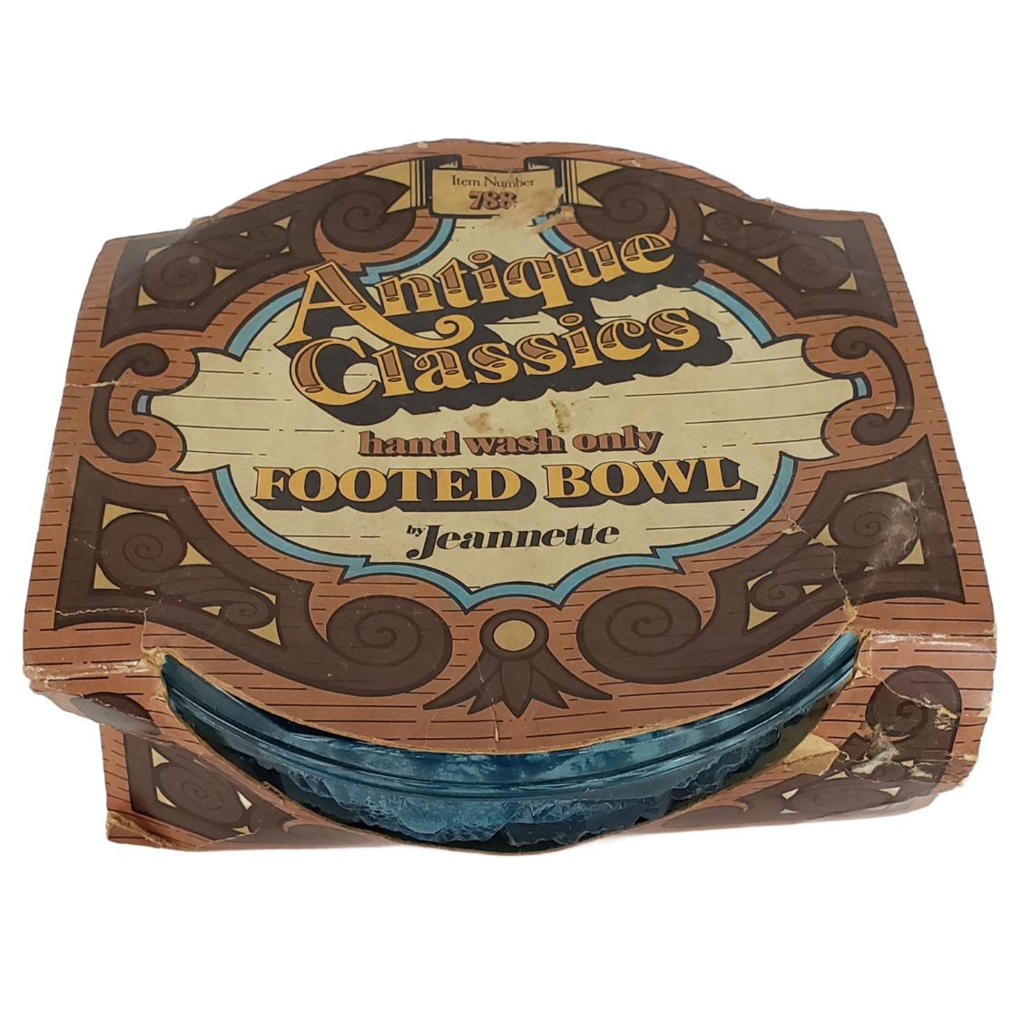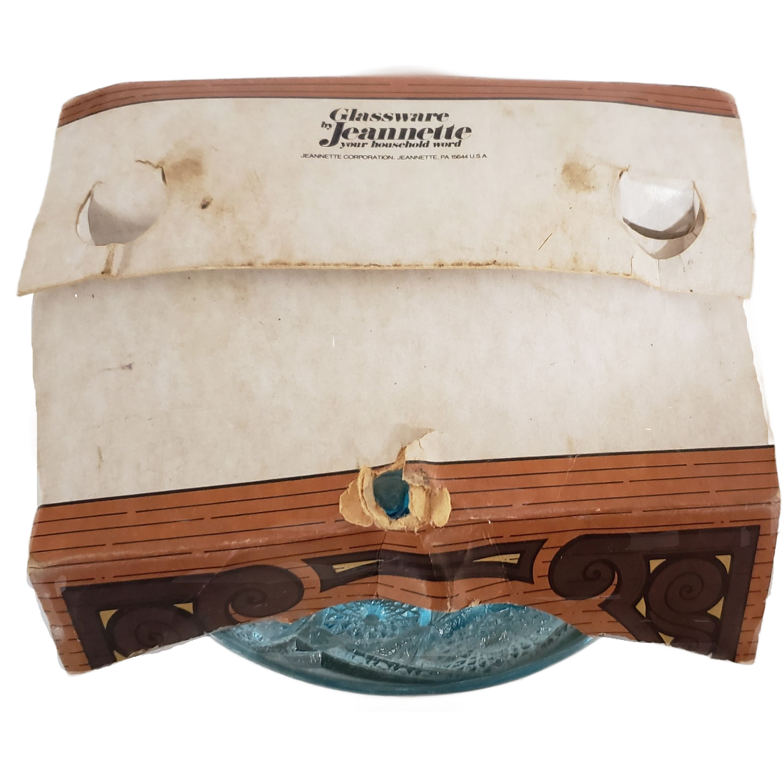 Vintage Jeannette Antique Classics Footed Bowl 7″ Fentec Pattern, Aqua-Blue, Stars, Arches #788