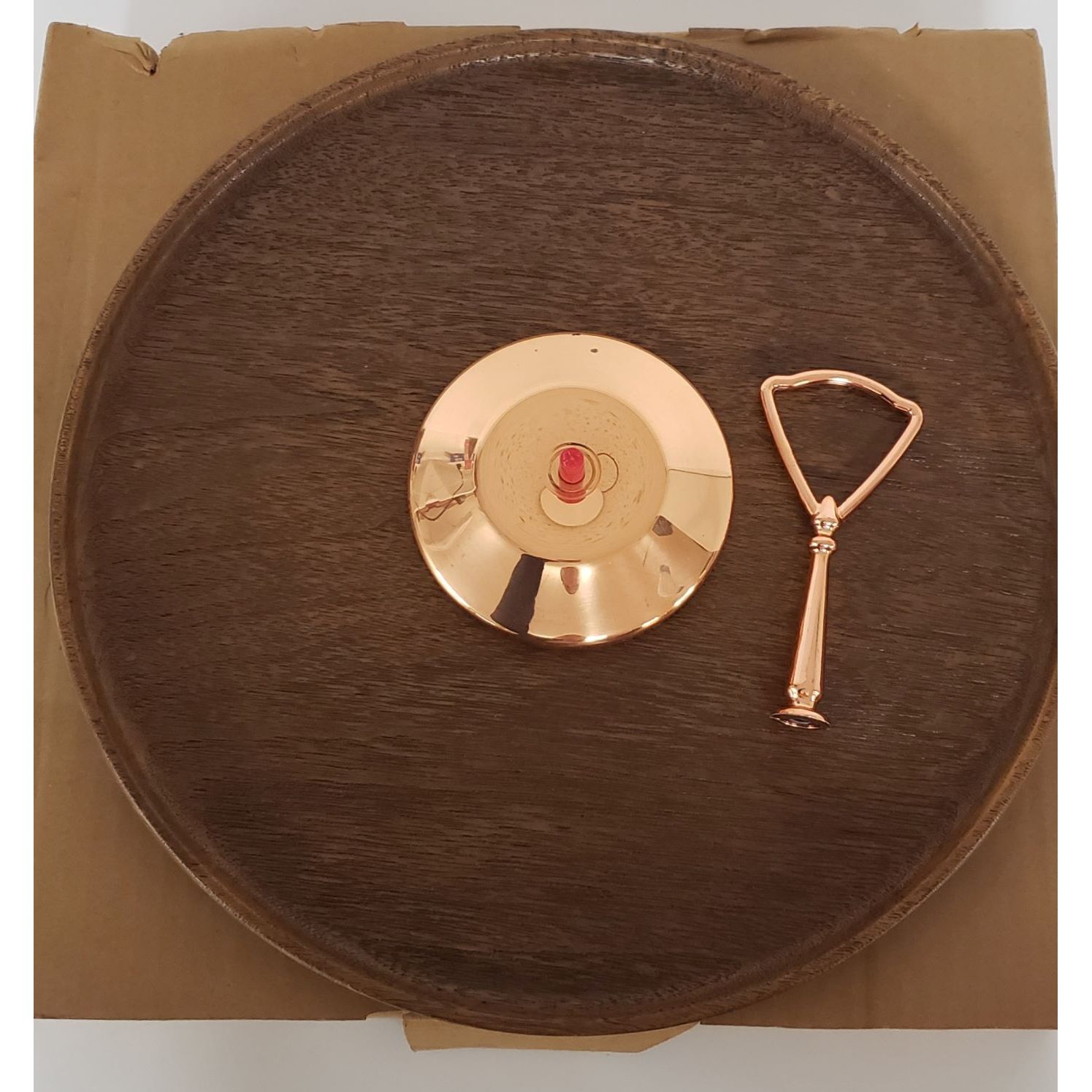 Vintage Resin Lazy Susan Brown With Copper Base And Handle 1970’s Size 13”
