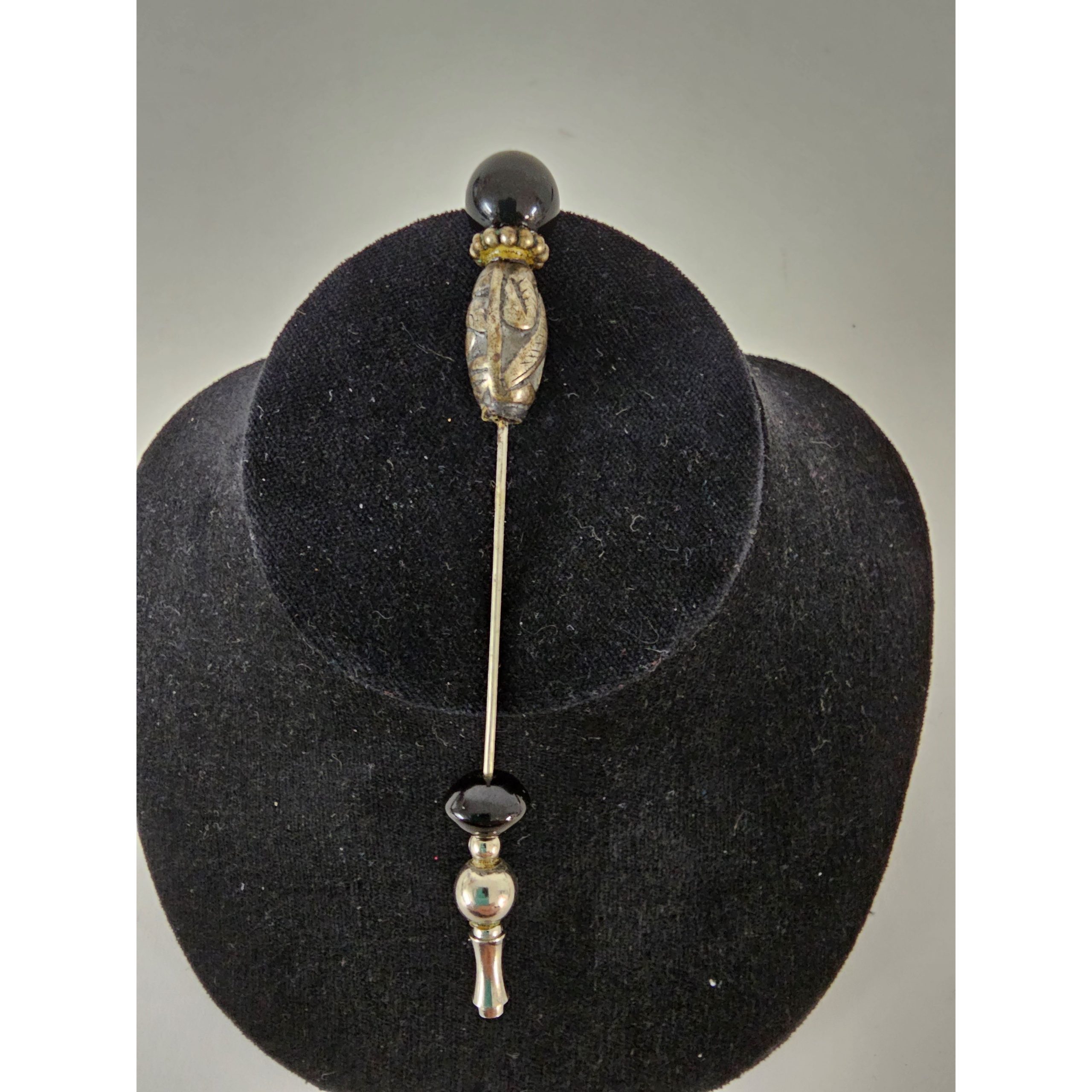 Vintage Silver Tone Beaded Stick Pin Art Deco 4 Inch