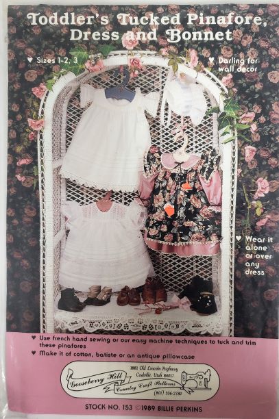 Vintage Toddlers Tucked Pinafore, Dress and Bonnet Pattern #153 Sizes 1-2, 3