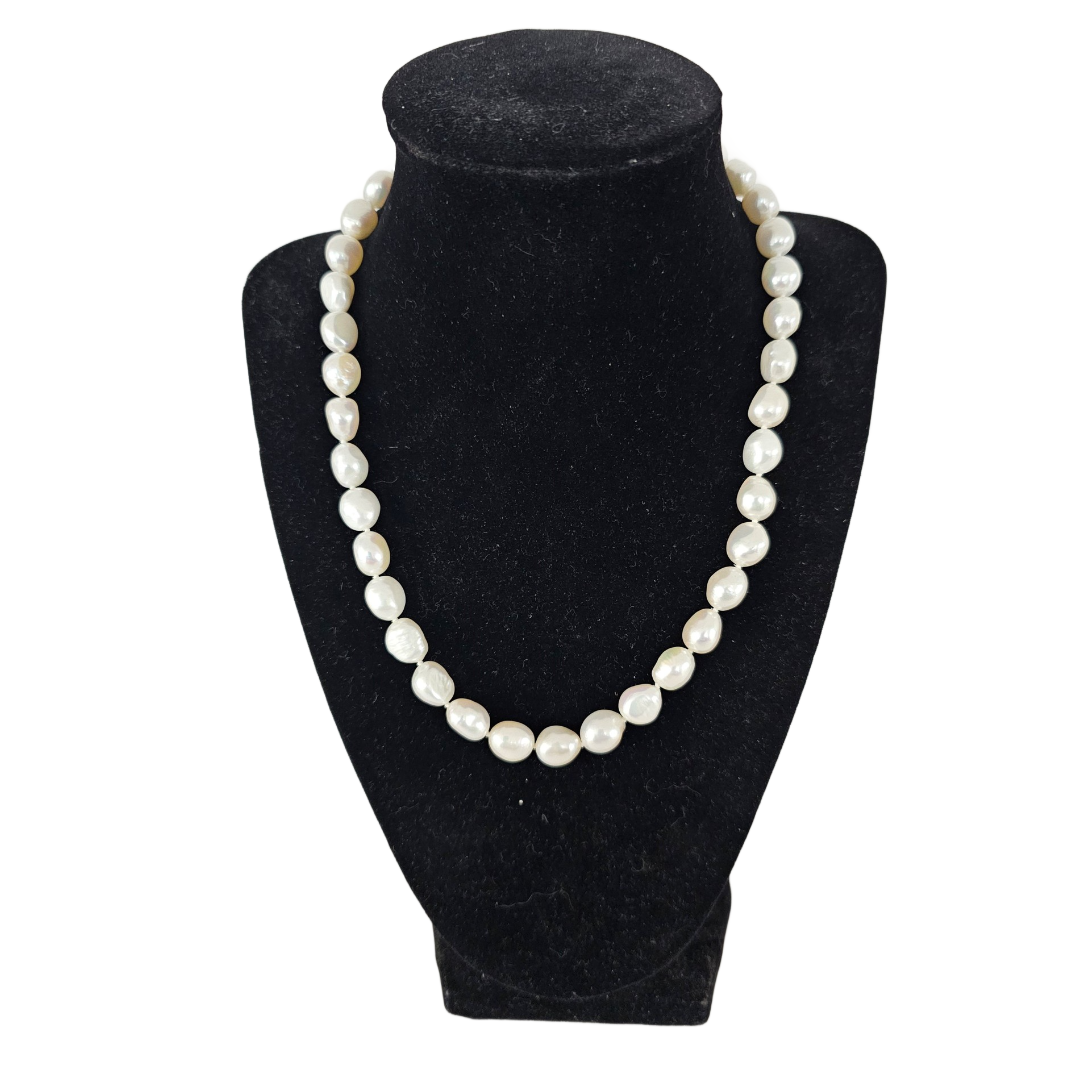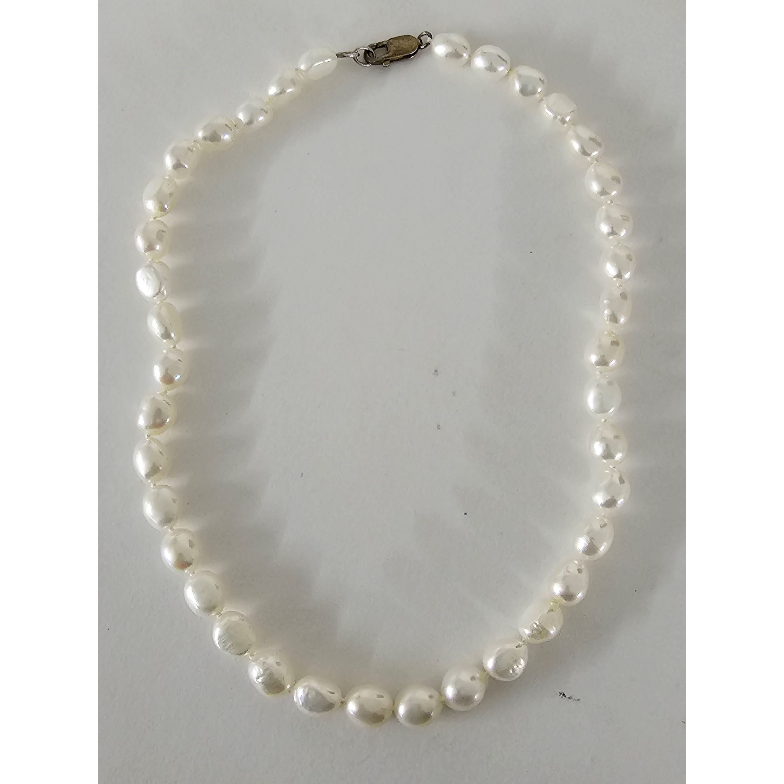 Vintage White 7-8mm Pearl Necklace Sterling Silver Lobster Clasp 17 Inch