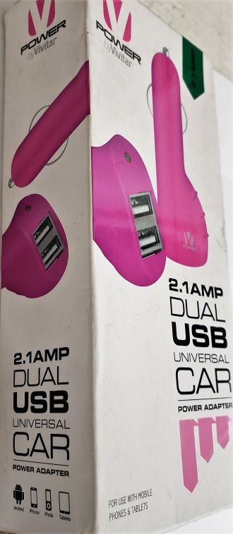 Vivitar FB-DC-2A Dual USB Universal Car Power Adapter 2.1 Amp Pink